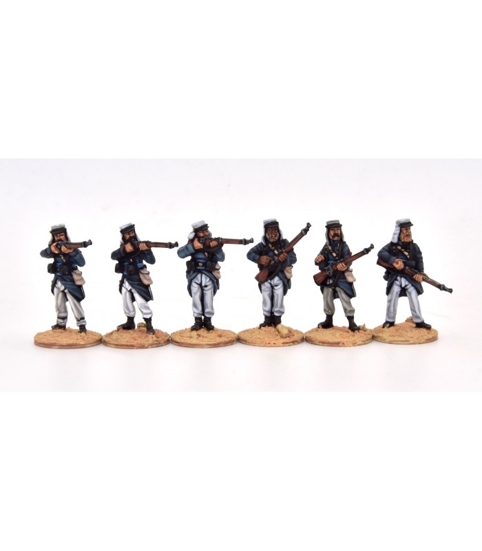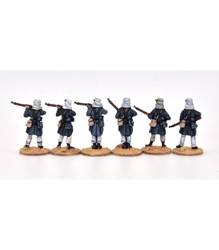 Légionnaires firing line kneeling, full marching order (knapsack)