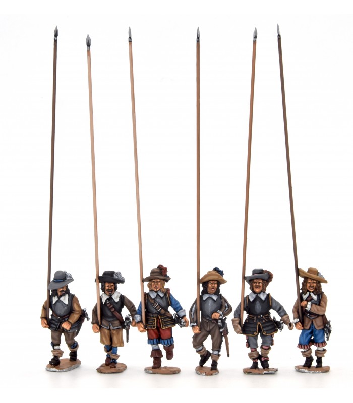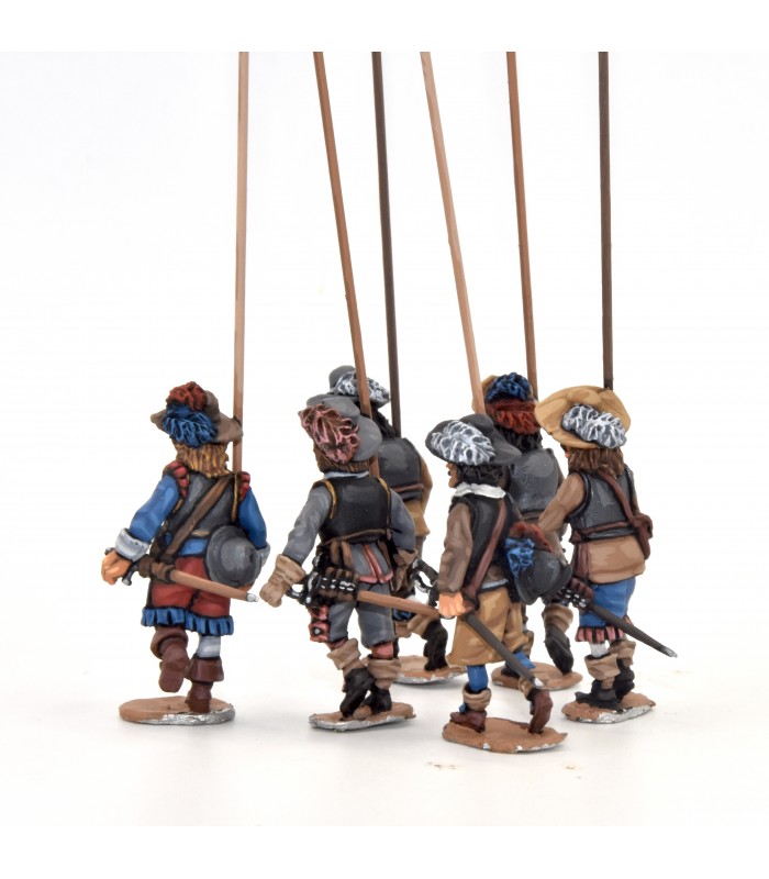 Unarmoured pikemen marching, soft hats (pikes not included)
