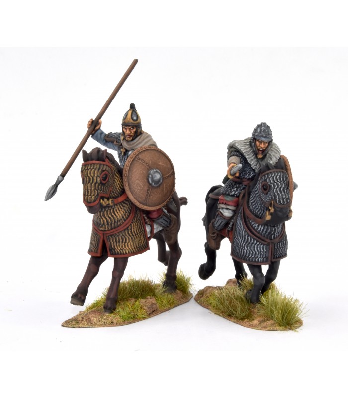 Grupo de mando de caballería pesada visigoda, caballos con armadura